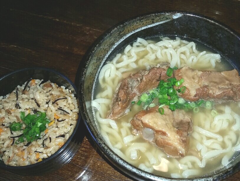 ソーキそばと、タコそばを注文。