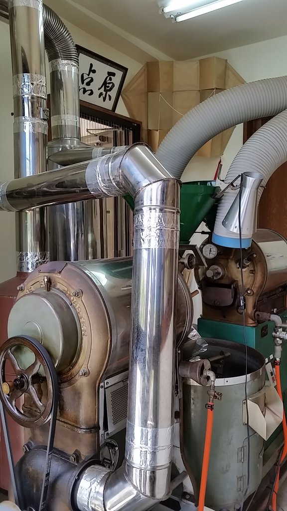 入口の横には、大きな焙煎機があります。