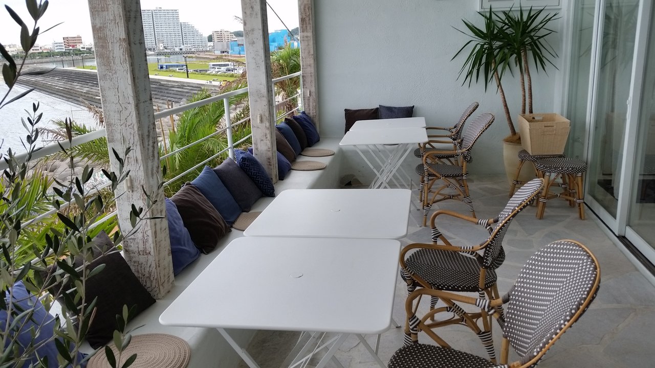 喜ぶカフェです。アメリカンビレッジの海側一番奥